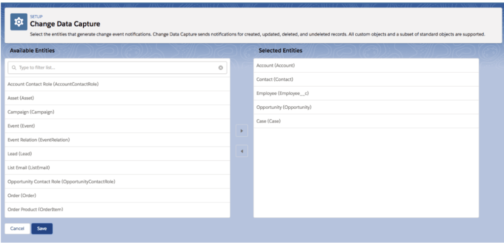 - First you need to enable Change Data Capture for the object to capture the data changes.