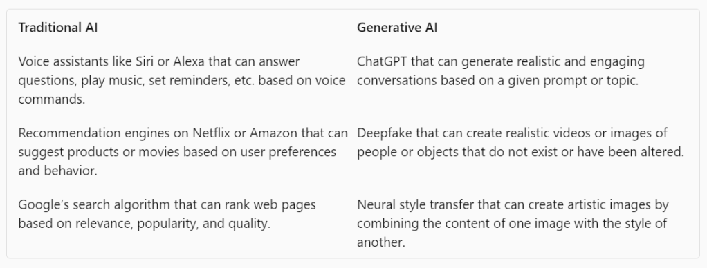 In this blog post, we will know the difference between Traditional AI and Generative AI.