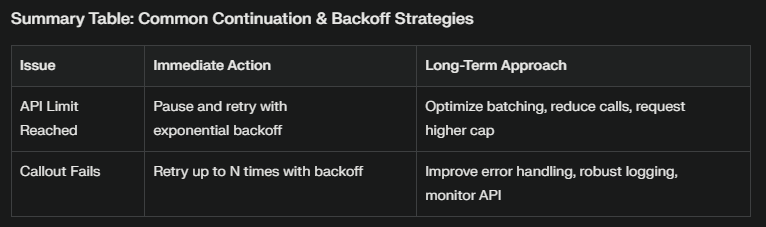 - For more advanced needs (e.g., Salesforce Order Management), define custom retry and backoff policies directly in Salesforce for orchestrated connections
